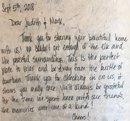 “This is the perfect place to relax and be away from the bustle of downtown. Thank you for checking in on us, it shows you really care.”