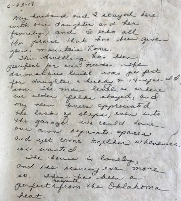 Fish-Creek-Estes-Park-Cabin-Review-06/23/2018 Published November 23, 2018 at 1837 × 2048 in Guest Reviews ← Previous Next → “The house is lovely, and the scenery even more so. This has been a perfect respite from the Oklahoma heat.” Share this: Click to share on Facebook (Opens in new window) Facebook Click to share on X (Opens in new window) X Click to email a link to a friend (Opens in new window) Email Like Loading...