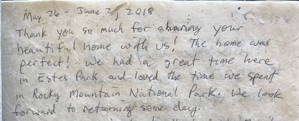 “We had a great time here in Estes Park and loved the time we spent in Rocky Mountain National Park. We look forward to returning someday.”
